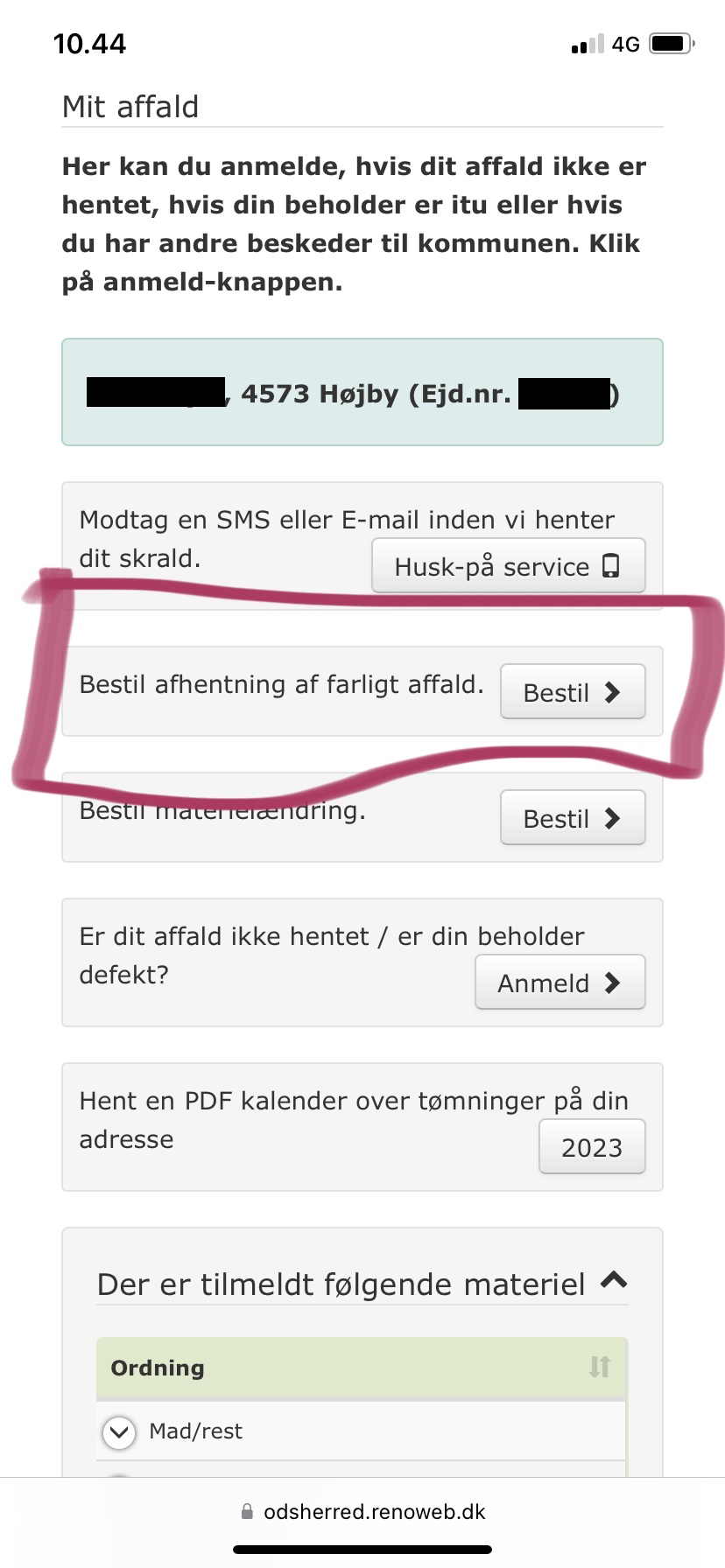 - Se hvilke affaldsordninger der er på din ejendom