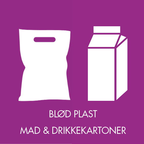 - Plastfolie (Blød plast og mad- og drikkekartoner)